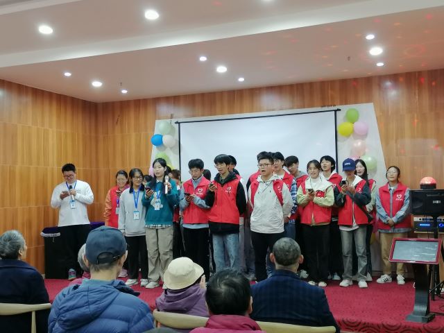 下午三点,电气学院志愿者们全部到达青孝颐养中心。随后,在电气学院志愿者实践部部长苏迪的主持下,疗养院活动正式展开,先后进行了《猪猪侠》、《new boy》两个舞蹈节目和一个纸牌魔术以及全体合唱《我和我的祖国》。