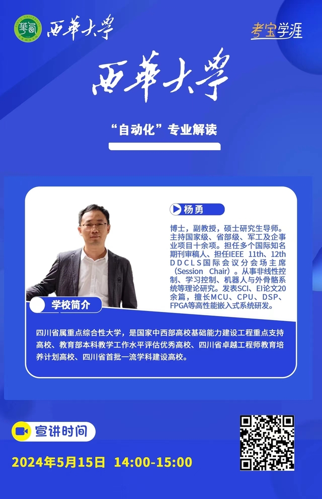 宣讲人:自动化专业系主任 杨勇 博士副教授