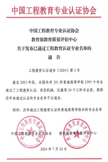 工程教育专业认证是国际通行的工程教育质量保障制度,是实现工程教育国际互认和工程师资格国际互认的重要基础。我国2016年正式加入国际工程教育《华盛顿协议》组织,标志着工程教育质量认证体系实现了国际实质等效,工程专业质量标准达到国际认可,成为我国高等教育的一项重大突破。通过工程教育专业认证,标志着该专业的人才培养质量实现了国际实质等效,进入全球工程教育的“第一方阵”,也为该专业的毕业生就业提供了良好的平台和国际“通行证”。