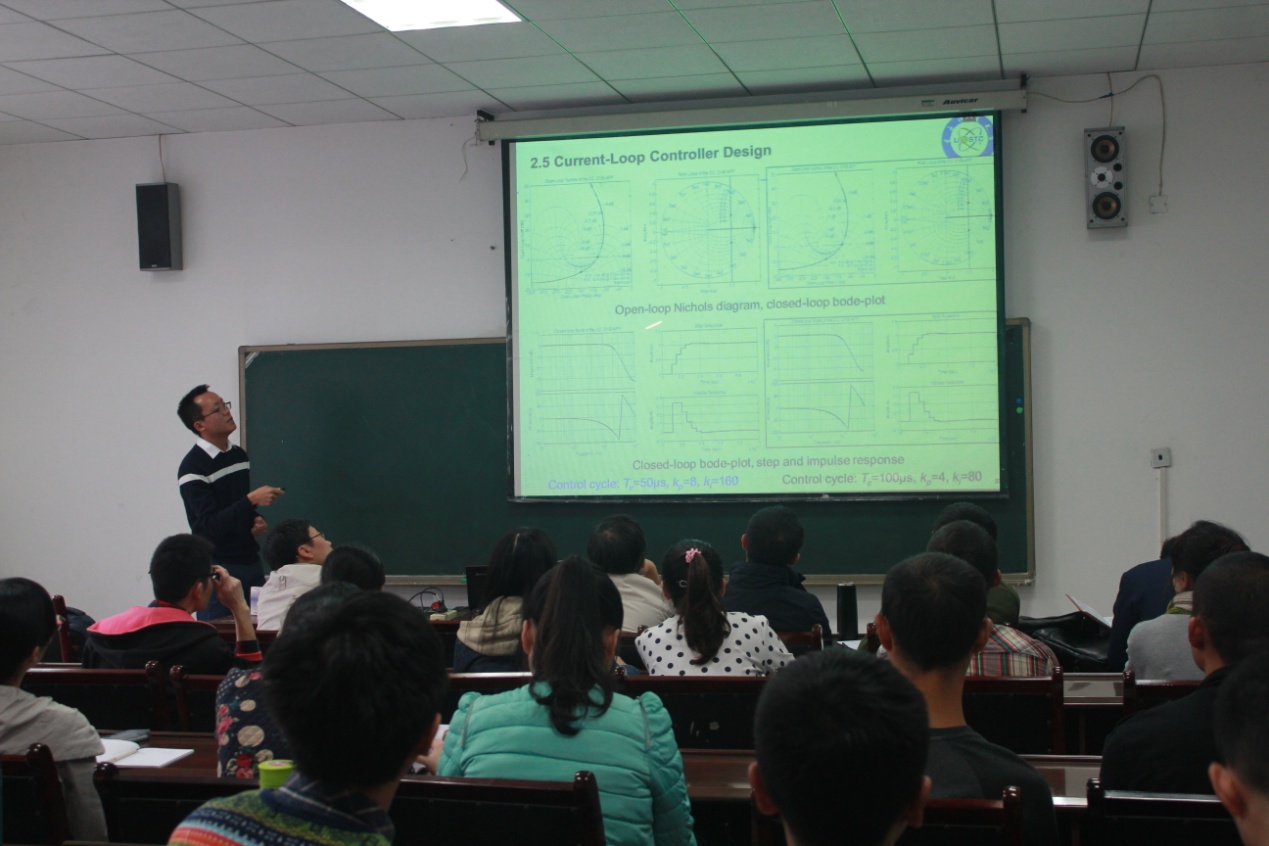 本次讲座韩杨博士结合自己的研究成果,分别从电能质量补偿装置拓扑及其控制策略研究、多电平逆变器调制策略与控制方法的探讨、基于多逆变器并联的弧岛微电网控制策略研究等几个方面做了详细的讲解。最后对电力电子与新能源技术在国内外的研究状况做了展望,对新能源的发展是一种挑战。