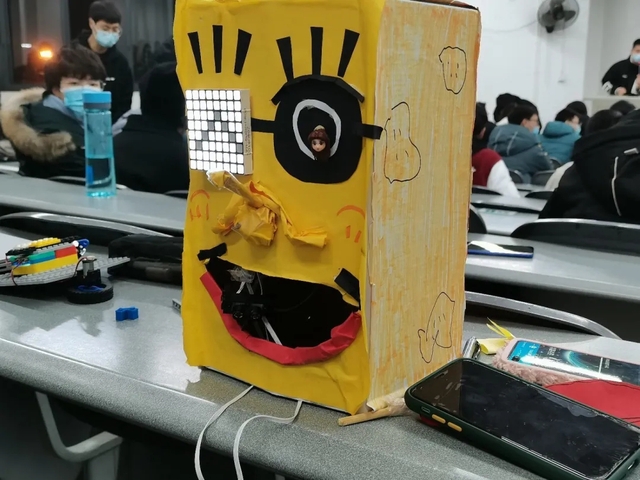 比赛采取5人团队制,参赛者通过现场陈述,配合PPT全方位地展示自己的作品。这些作品大多在紧贴实用的同时又极具创意。其中,第四组的选手基于当下人工智能的飞速发展的现状,设计了一个能够看管贵重物品的奥特巡警官“迪迦”,它不仅能够巡逻,还能在发现敌人后进行攻击,并且在受到攻击后进行防御。