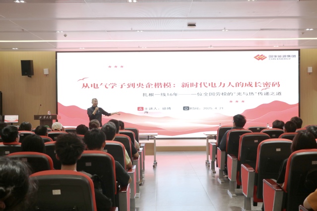 徐博海校友以其丰富的职业经历和卓越的成就,成为了电气学院学子们的杰出榜样。在讲堂上,他首先展示自己从一名电气学子成长为央企楷模的进阶图谱。从瀑布沟电厂的技术突围,到大岗山电厂的五维能力模型构建,再到担任党支部书记时的党建与生产“双螺旋”融合,徐博海校友用自己的实际行动诠释了扎根一线16年并不断进取的电力人精神。