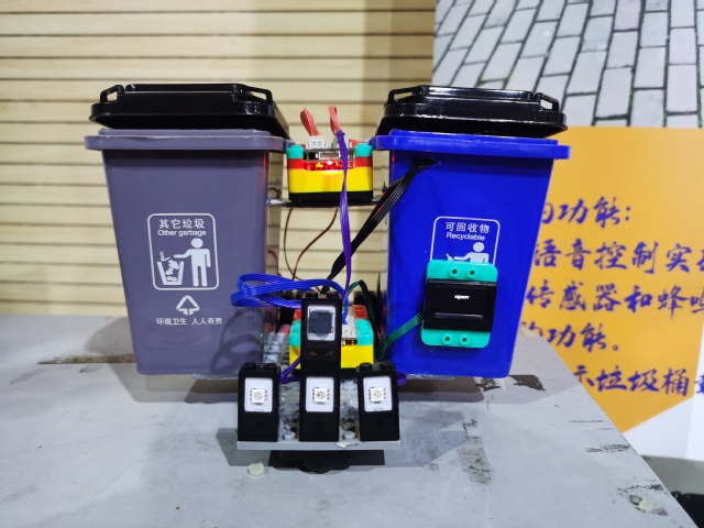 在比赛过程中,选手们呈现出许多有创意且实用的作品——可以采集图片信息自动垃圾分类的“自动分类垃圾桶”;能够24小时随时贩卖药品的“便携自主医疗箱”;可以根据需要移动到指定位置并按垃圾类别自动开关的“移动垃圾桶”等等。在参观过程中评委老师表示,这次的比赛不仅完美地将同学们的创新想法运用课堂所学知识展现出来,同时也激励同学们学习和了解更多技术。