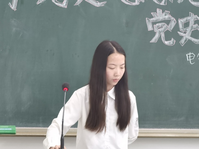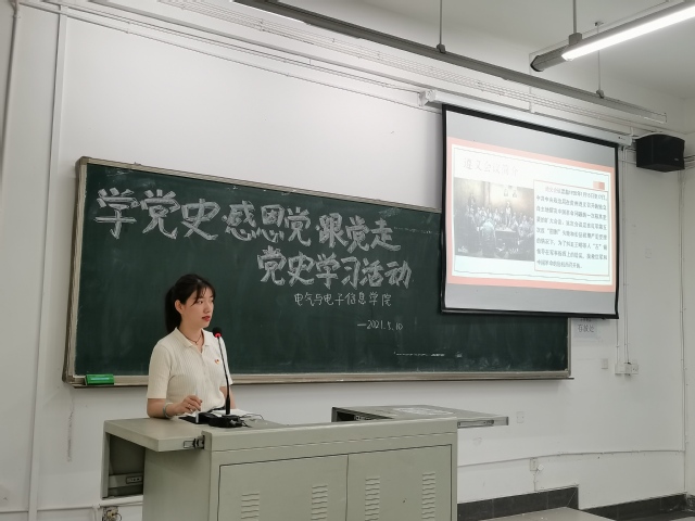 陈彦好同学在宣讲中介绍了抗美援朝的实质,是国家领导人为保护祖国安全,做出的反击美国、支援朝鲜的英明决策。展现了中国军队的实力;冯莉均同学介绍了中国共产党为调动广大农民革命积极性进行的土地改革,保家保田运动;刘娟同学在发言中讲述了用武装力量夺取城市,建立新的革命根据地的南昌起义;徐莲同学分享了结束博古等左倾冒险主义的领导权,确立了以毛泽东为代表的新的中央的正确领导遵义会议。讲台上关于党史的分享源源不断,参与此次活动的党员同学也正襟危坐、倾耳聆听。