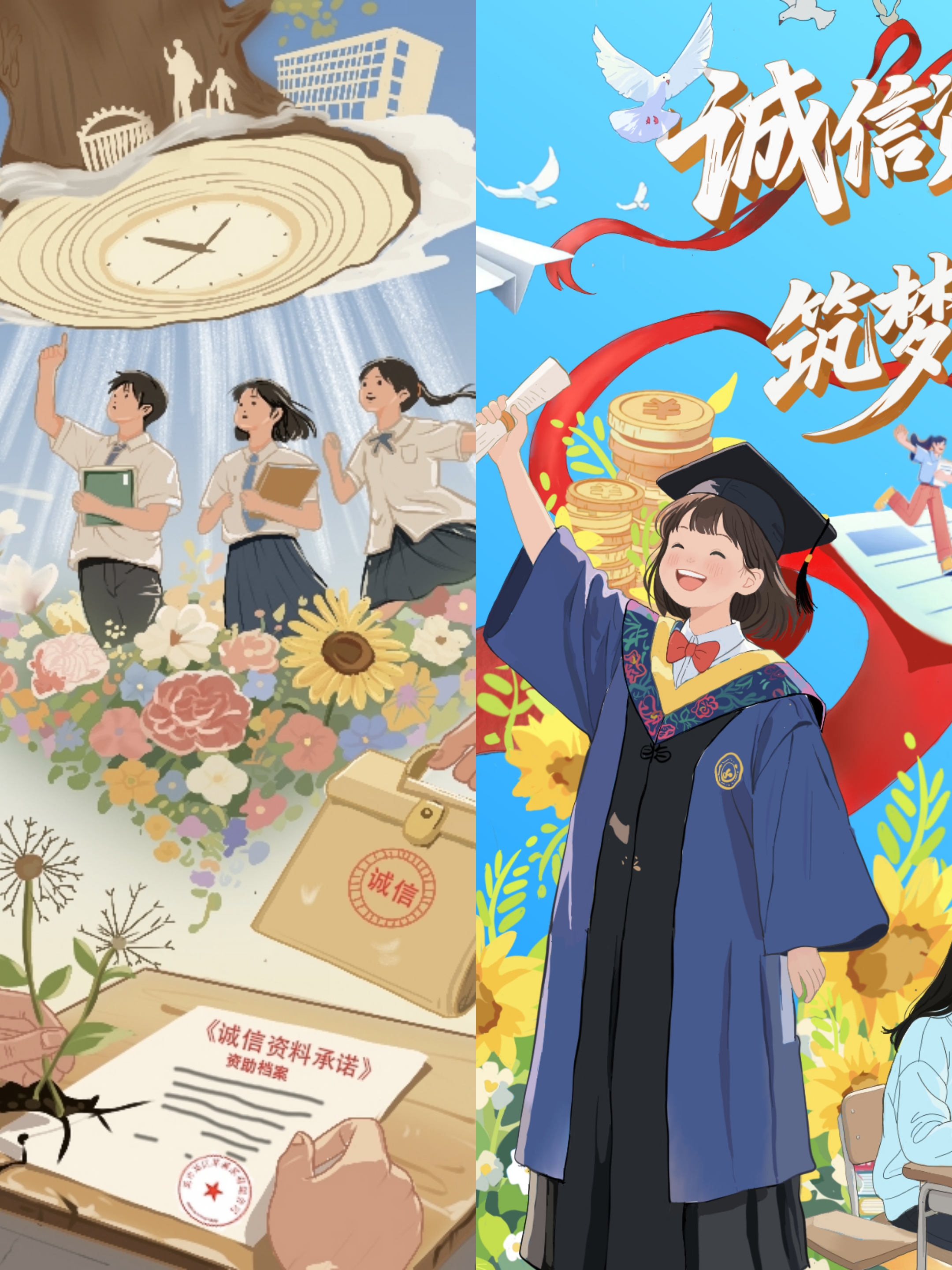 宣传画优秀作品:1.资助诚韵,青春绮梦华章(美术与设计学院 乔思媛)