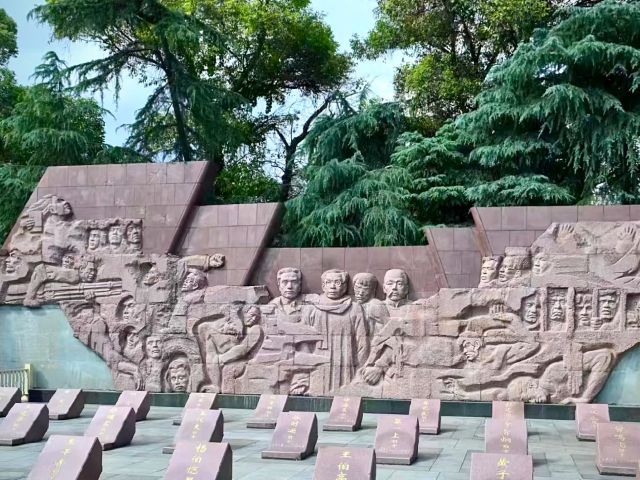 次日十二桥烈士陵园,断手雕塑的凌厉线条与32座烈士墓碑形成震撼视觉符号。当成员们默哀献花时,浮雕上振臂呐喊的英烈形象与脚下静默的土地产生时空共振,32位志士“为黎明铺路”的壮烈,让“和平年代”的年轻心灵深受震撼。