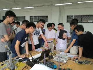 本次比赛共有来自bw西汉姆联、机械工程学院、计算机与软件工程学院、理学院和西华学院各年级各专业共计102名同学34组报名参赛,其中规定类题目22组,自选类题目12组,最终遴选出20件作品参加测评。评审会正式开始后,参赛选手分别上台,通过视频、PPT等方式向评委详细介绍了参赛作品的工作原理、操作方法以及创新性特色。全部参赛选手介绍完自己的作品后,评委与同学一起来到6A213进行作品测试。评委针对作品的性能、特点等进行了提问,提出相关改进建议,并通过测试进行公正评分与相关指导。其中一批别具特色的优秀作品脱颖而出,如:音频信号采集分析装置,程控直流电子负载,电子血压计,基于Zigbee的无线医疗呼叫系统等。同学们注重实际,通过模拟、仿真、调试把对未来生活的构想付诸于实践,展现出了当代大学生用科技改变未来的积极态度。