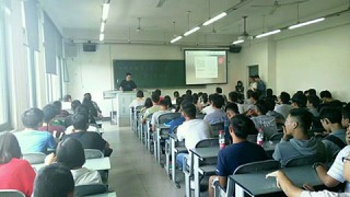 之后以freescale命名的飞思卡尔实验室成员沈夏名与唐飞飞二人对其实验室的情况进行了介绍,这个于2008年成立的高含金量社团是以“恩智浦”杯全国大学生智能车竞赛、全国大学生电子设计竞赛、四川省大学生电子设计竞赛为平台,并在众多大型比赛中为校取得了荣誉,同时两位学长为有意参加的同学提出了极高的要求,强调了计算机的重要性,秉着宁缺毋滥的原则,旨在将社发扬光大。