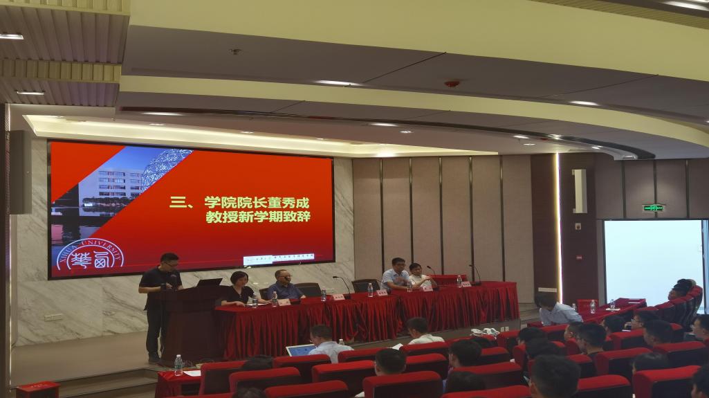 学院院长董秀成教授作了新学期致辞,回顾了学院硕士学位点不断壮大的历程,强调了研究生期间理论学习与动手实践的重要性,鼓励研究生要潜心学习、勇攀高峰,坚定信心,成长成才,努力成为 “知难而进 自强不息”新一代西华电气人。