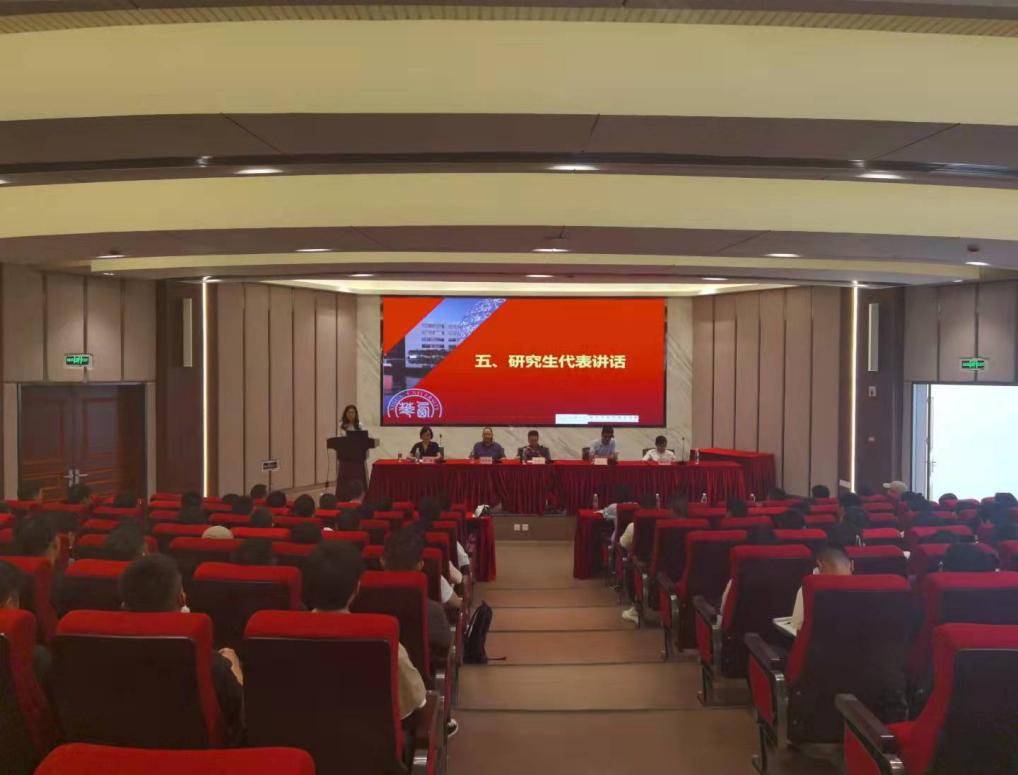 2021级研究生李颖作为新生代表进行了发言,称西华同学为“西华人”,而一代代西华人同心砥砺,薪火相传,将秉持“求是、明德、卓越”的校训,在深厚的文化底蕴和浓郁的学术氛围的校园中,积极进取、奋发向上。向老师表达同学们真诚求学的态度以及对三年后全新的自己的期待!