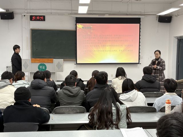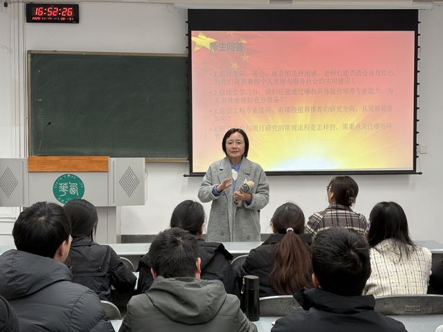 雷霞教授结合自身经历,就考研与就业的选择、毕业设计的开展、口头表达与写作能力的培养等方面提出建议,并特别强调了锻炼独立思考能力、善于提出问题的重要性,鼓励同学们在学习和实践中不断成长。她指出:“作为新时代的青年,你们既要仰望星空,又要脚踏实地,在专业领域深耕细作,同时也要关注社会需求,将个人发展融入国家发展大局。”