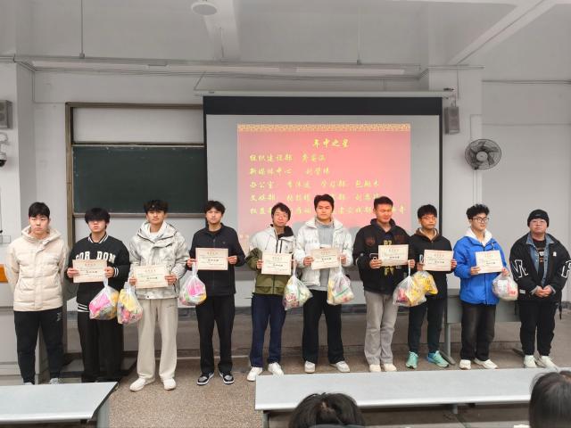 汇报环节结束后,学生会执行主席廖凯凯宣读了十一月、十二月与年中的部门与个人考核结果,并对表现突出的集体与个人给予充分肯定,由副书记,主席为十一月,十二月之星颁发表彰文件和奖品,团委书记邓燕为优秀部门颁发表彰文件和奖品。考核结果反映了各部门在活动组织、内部建设、协作效率等方面的综合表现,也为全体成员树立了学习标杆。