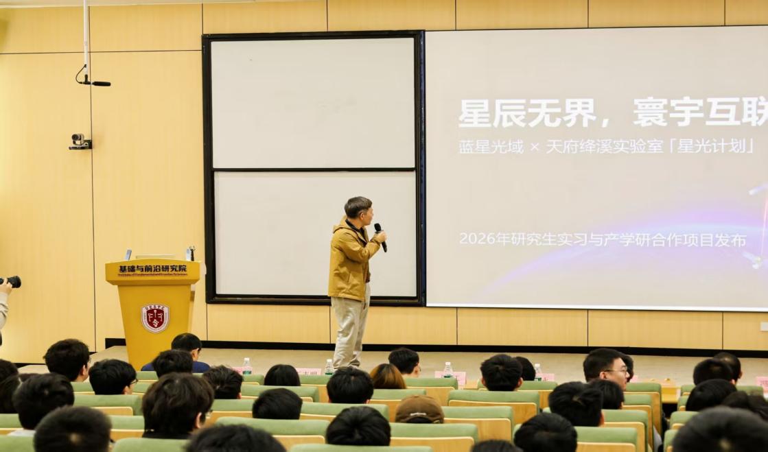 蓝星光域成都子公司总经理冯昌鹏以“服务国家战略:卫星互联网产业的人才需求”为题,介绍了商业航天与卫星互联网产业发展趋势,并详细解读“星光计划”实习培养模式与发展通道。蓝星光域招聘经理孙悦就研究生实习岗位、职业发展路径进行宣讲。在自由交流环节,学生党员与企业专家、高校教师围绕实习机会、职业规划等深入对话,现场气氛热烈。大家一致认为,通过“党建+产学研”协同模式,能够有效打通人才培养与产业需求之间的“最后一公里”,为研究生高质量就业开辟新空间。