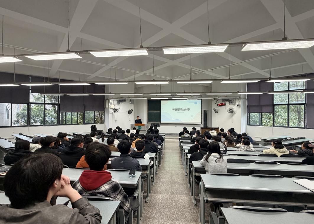 在交流环节,同学们踊跃提问,三位研究生耐心解答。针对“专业课范围太广如何准备”“英语翻译遇到生词怎么办”等问题,他们结合自身经验给出了实用建议。现场气氛热烈,掌声不断。