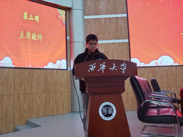 执行主席向少杰为本次辩论赛致辞,提到:“辩论带给我们的不仅仅是比赛的结果,更重要的是在组织参赛的过程中辩手们组成了密不可分的战斗群体,体现了分工合作的精神。”并祝愿每个参赛选手都能发挥出最好的水平,展现当代大学生青春活力与精神面貌,预祝辩论赛取得圆满成功。