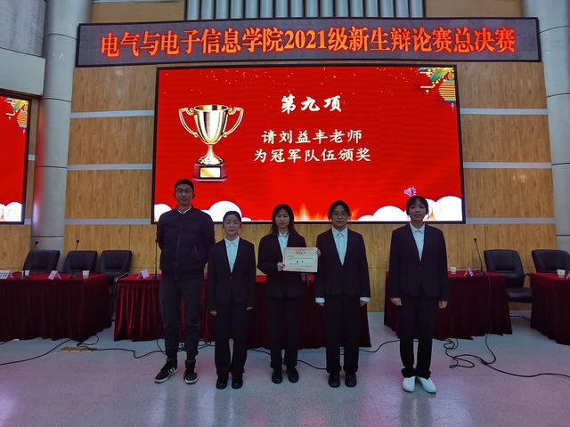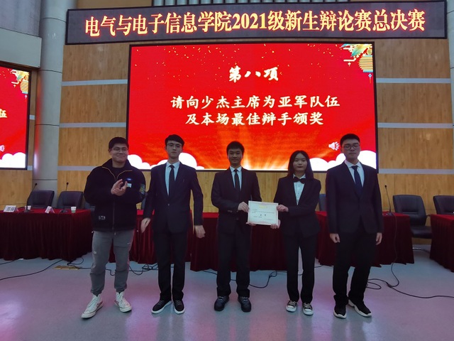 经过评委们的综合考量,反方电子信息三班二队荣获本次新生辩论赛冠军,反方三辩凭借自身在比赛中优异的表现赢得了最佳辩手的称号。