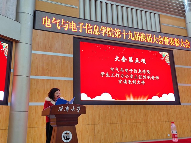 在观看各部门上一年度工作的风采展示视频后,由刘钊老师宣读电气学院团委 学生会2020-2021学年表彰先进集体和个人的通知,龚翠艳老师为获奖人员颁奖。
