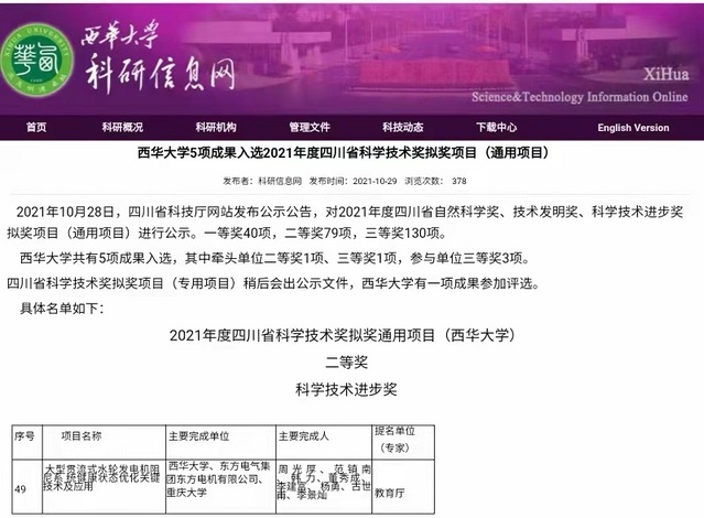 项目荣获2021年度四川省科技进步二等奖