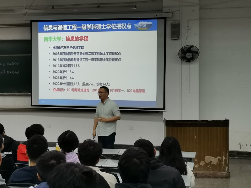 黄永茂老师以考研为主线,从电气学院硕士学位发展历程、各专业框架分析及对应的考研现状和形式等多个方面进行讲解。他整理并分析了近三年学院的研究生招生、报考、调剂和录取人数等指标,指出目前各专业存在“内卷”考研现象。