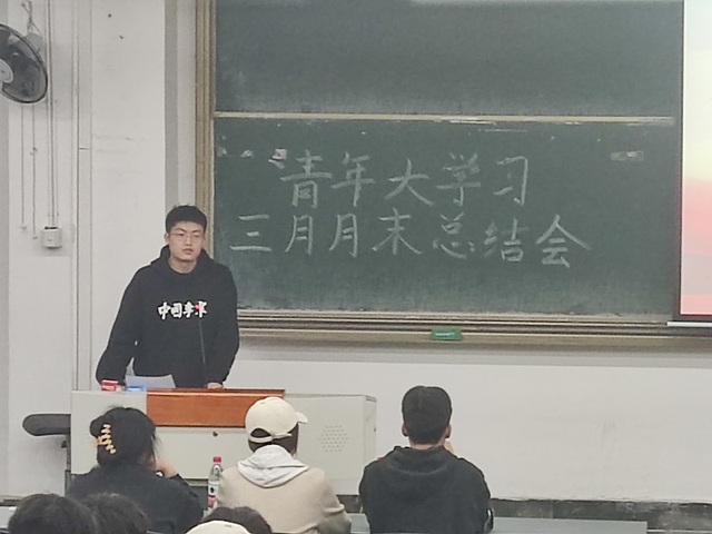 会议上,班级青年大学习学习率排名靠前的团支书周凯同学上台进行经验分享。周凯同学建议各班长与团支书通力协作,加大对班级同学的督促力度,改进督促方法,提高各班团员对青年大学习的重视程度,以此提升各班级的学习率。