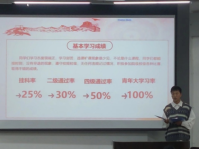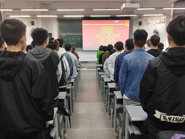 大会在全体奏唱团歌声中开始,两位主持人对答辩流程及相关规则进行介绍。各支部答辩人从支部概况、学习情况、支部荣誉等多个方面对本支部目前的建设成果进行展示,并列举出支部建立以来的青年大学习完成率、四六级通过率、挂科率等各项数据作为本次评优的参考指标。结合当下疫情防控要求,宜宾校区参加本次“五四”评优的两个班级无法参与本次现场答辩,均采用视频录制方式进行。