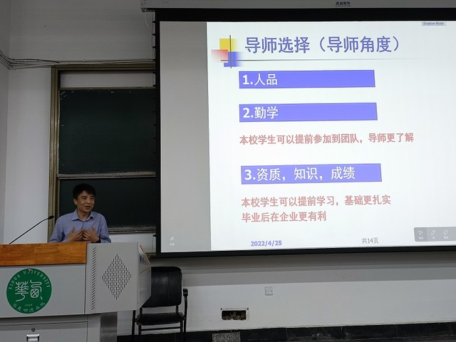 会上,郭忠林反复强调目标的选择至关重要。他指出,明确自己的奋斗方向是考研第一步,需坚定自己的信念与动力,做好充足的思想准备:“考研的路途本就是无数次想放弃,又在无数次的坚持下重获新生,最终走向胜利。”