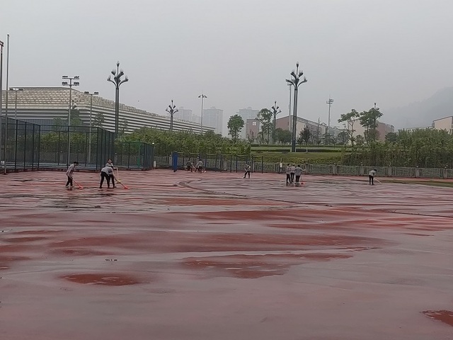 宜宾管委会工作人员协助清理赛道积水