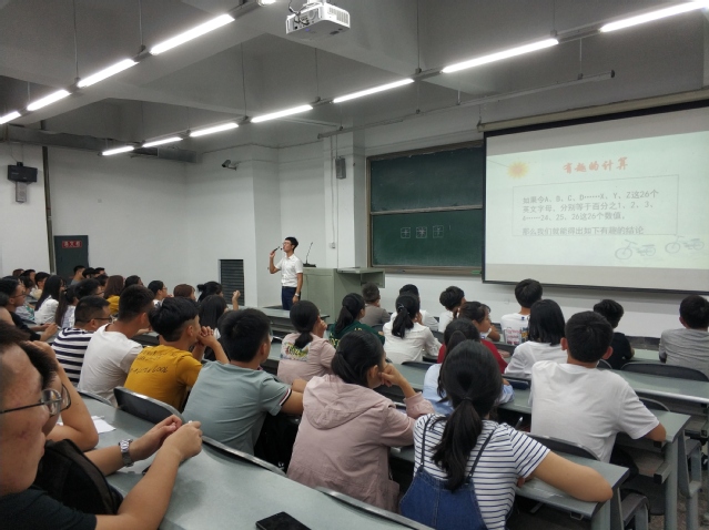 廖老师以“有趣的计算”为开端,告诉同学们是“心态”能使生活变得圆满,随后就新生生活方式所发生的改变展开分析,并与同学们积极互动讨论,现场气氛活跃。
