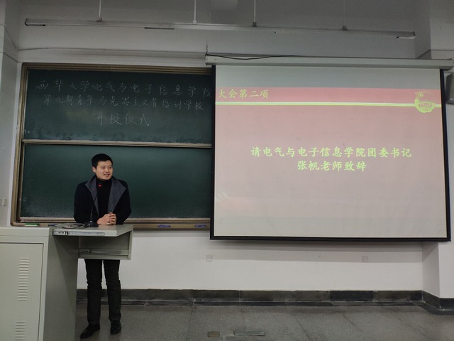 开校仪式在全体成员合唱《共产主义青年团团歌》中正式开始。电气学院团委书记张帆老师在本期青马培训发表了致辞:“希望同学们能把握这次难得的机会,在本期青马培训中收获不一样的成长。要积极学习,发扬长处,用自己的努力充实大学的生活”,鼓励大家“珍惜时间,脚踏实地”,并预祝第九期青马培训能在同学们的共同努力下获得圆满成功。