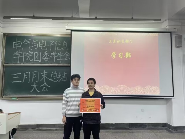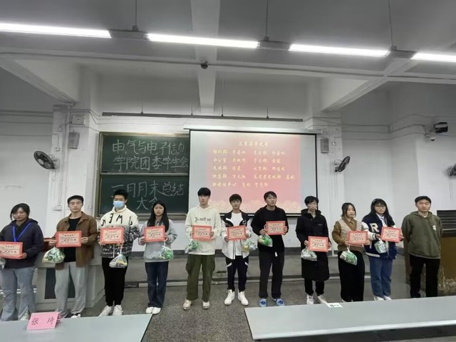 全体成员起立齐唱团歌,大会正式开始。易凡越组织在场人员一同观看团委 学生会部门三月工作总结视频。视频围绕着各部门三月工作情况,展现了各部门成员在日常工作中的风采。视频结束后,学生会主席李子奇宣读各部门三月每月之星和优秀部门的考核结果并加以表彰,由学生会主席王棚和团委副书记张琦分别对每月之星和优秀部门进行颁奖。
