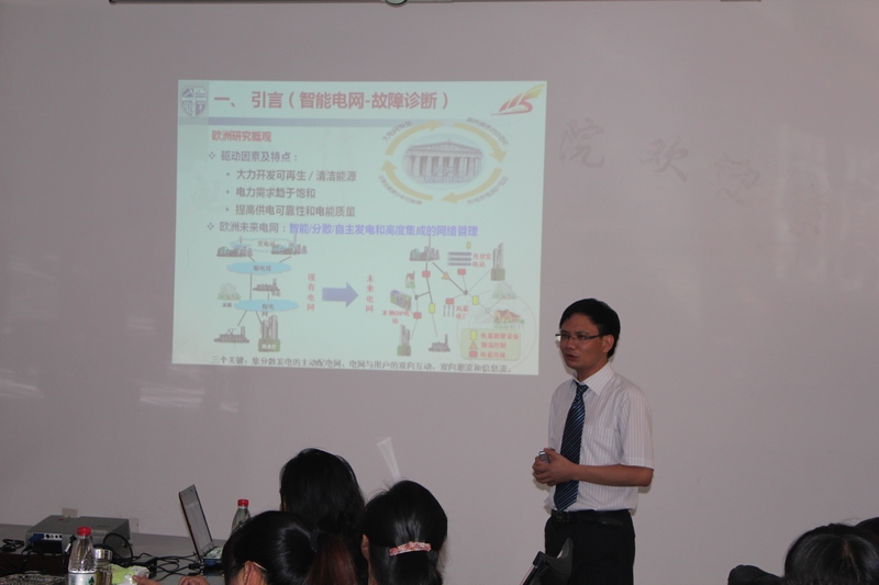 | 6月14日下午3点,西南交通大学电气工程学院博士生导师何正友教授和刘志刚教授应邀来我校,分别作了题为“智能输配电网故障诊断研究新进展”和“HHT及其在电力系统中的应用进展”的学术报告。报告会在6A-301教室举行,电气信息学院院长王军及部分师生聆听了本次学术报告。 何正友教授曾获“四川省优秀博士论文”、“黄袁教职工创新奖”,2006年入选“四川省杰出青年学科带头人培养计划”和 “教育部新世纪优秀人才支持计划”,2007年,教育部创新团队“磁浮技术与磁浮列车”骨干成员,研究方向为现代信号处理与信息论方法在电力系统中的应用、电力系统暂态保护和行波测距 、电网故障诊断、配电网络及自动化等。何教授在“智能输配电网故障诊断研究新进展”报告中详细介绍了输电网故障诊断、故障定位和配电网故障选线等方面的研究新进展。结合大量数据和图片,何教授阐述了智能电网相关概念和欧美及中国智能电网的发展驱动力及异同,梳理了目前输配电网故障诊断的主要方法及其优缺点,介绍了智能电网自愈和自适应以及分布式能源接入等研究新热点和他在输配网故障诊断中提出的健康诊断等新概念,展望了未来输配电网的发展以及需要研究的问题。 刘志刚教授曾获四川省优秀博士论文奖、全国百篇优秀博士论文提名奖、第七届詹天佑专项基金奖、四川省高等教育教学成果一等奖、霍英东高等院校青年教师基金奖励。研究方向为信号处理与计算智能及在电力系统和轨道交通中的应用,以及高速磁浮车载网络工程化实现。刘教授在“HHT及其在电力系统中的应用进展”报告中介绍了信号的实质与描述,用实例阐述了傅氏变换的不足,详细介绍了HHT的基本理论及其在电力系统中的广泛应用。最后,刘教授展望了HHT研究的发展前景及其在电力系统应用中应集中研究的两个方面。 何正友教授、刘志刚教授的报告引起了在场师生的强烈兴趣,为今后的研究提供了新思路。会后,两位教授就科研方向、实验室建设等方面问题与在场师生进行了深入的交流。 |