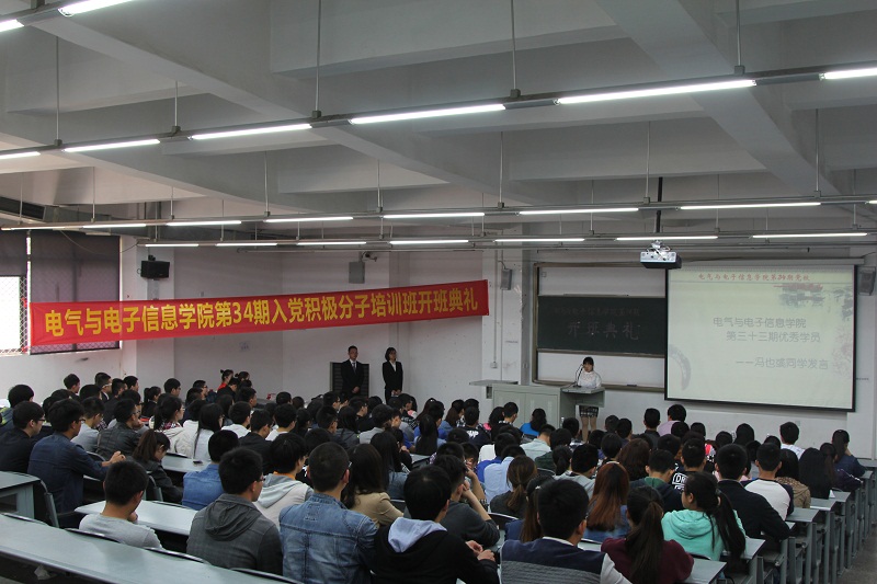 | 伴随着庄严的国歌声,动员大会正式拉开帷幕。首先是通过播放PPT和视频展现我院历届党校的风采和本期学员的新面貌。紧接着周川老师上台发言,向本期全体学员提出期望和要求:珍惜这次学习培训的机会,严格遵守培训班要求;端正入党动机,树立正确的世界观、人生观和价值观;努力提高政治觉悟和理论水平;踊跃参加社会实践活动,积极为同学服务。当前全校正在开展服务型党组织创建活动,学校狠抓学风、考风建设,要求34期党校学员以身作则,为营造学校、学院优良学风、考风环境起好模范带头作用。 随后,周川老师、刘秀丽老师分别为本期党校班、组长颁发聘书。班长练银峰同志也介绍了党校学习的纪律和要求,一句“欲戴王冠,必承其重”让学员们了解学习的艰辛和收获的惊喜。33期优秀学员代表冯也彧同学以及34期新学员代表张芯嘉同学的发言都表示,定不辜负党组织和院领导的期望,认真学习党的基本理论和基本知识,延续学院党校辉煌,在今后的学习、实践中,按照党员标准严格要求自己,争取早日加入中国共产党。 最后,本次动员大会在《国际歌》中画上了圆满的句号。 |