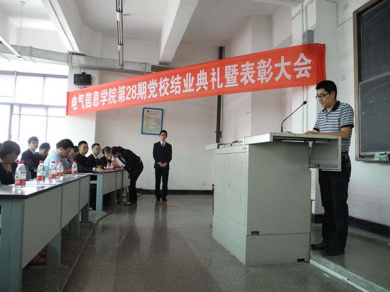 516中午1220分,电气信息学院第27期党校结业典礼暨表彰大会在6B208如期召开。参加本次结业典礼的领导和老师有电气信息学院党委副书记周川老师,学院学生党总支书记、委员,以及学院班主任老师。