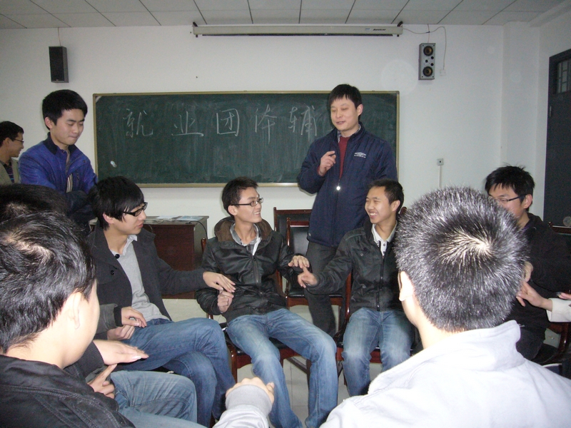 2011年4月8上午10点电气信息学院在6A314组织了毕业班同学,开展了一次别开生面的活动——就业团体辅导。本次辅导指导老师由学院学工办主任郑宇老师担任,参与的十二名同学均为电气信息学院2011届信息工程专业的毕业生。