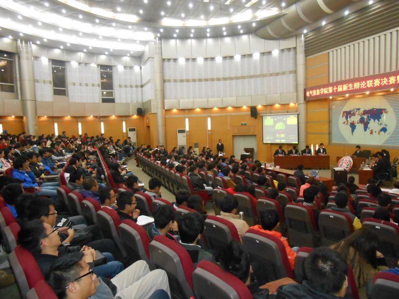 1119日晚上7点,电气信息学院第十届新生辩论联赛决赛暨颁奖典礼在四教报告厅内隆重举行。观看比赛的领导和老师有学院党委副书记副院长周川老师,学院团委负责老师以及2012级新生班主任。各学院学生会代表、校学生会代表,院学生会全体成员以及广大同学到场观看了比赛。