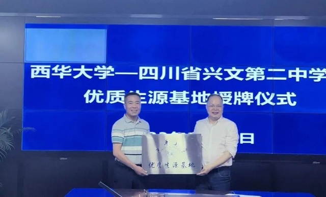 周良辉同志对兴文二中的办学成果表示肯定,对兴文二中向西华大学输送高质量人才表示感谢,介绍了西华大学的发展和前景,并向兴文二中授牌——西华大学优质生源基地。